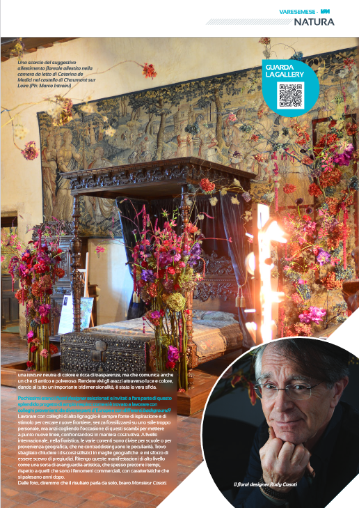 Rudy Casati, floral designer di fama internazionale, racconta com’è nato il suggestivo allestimento floreale a sua firma nel castello di Chaumont sur Loire: un lavoro che definisce “un’avanguardia artistica rispetto ai fenomeni commerciali”