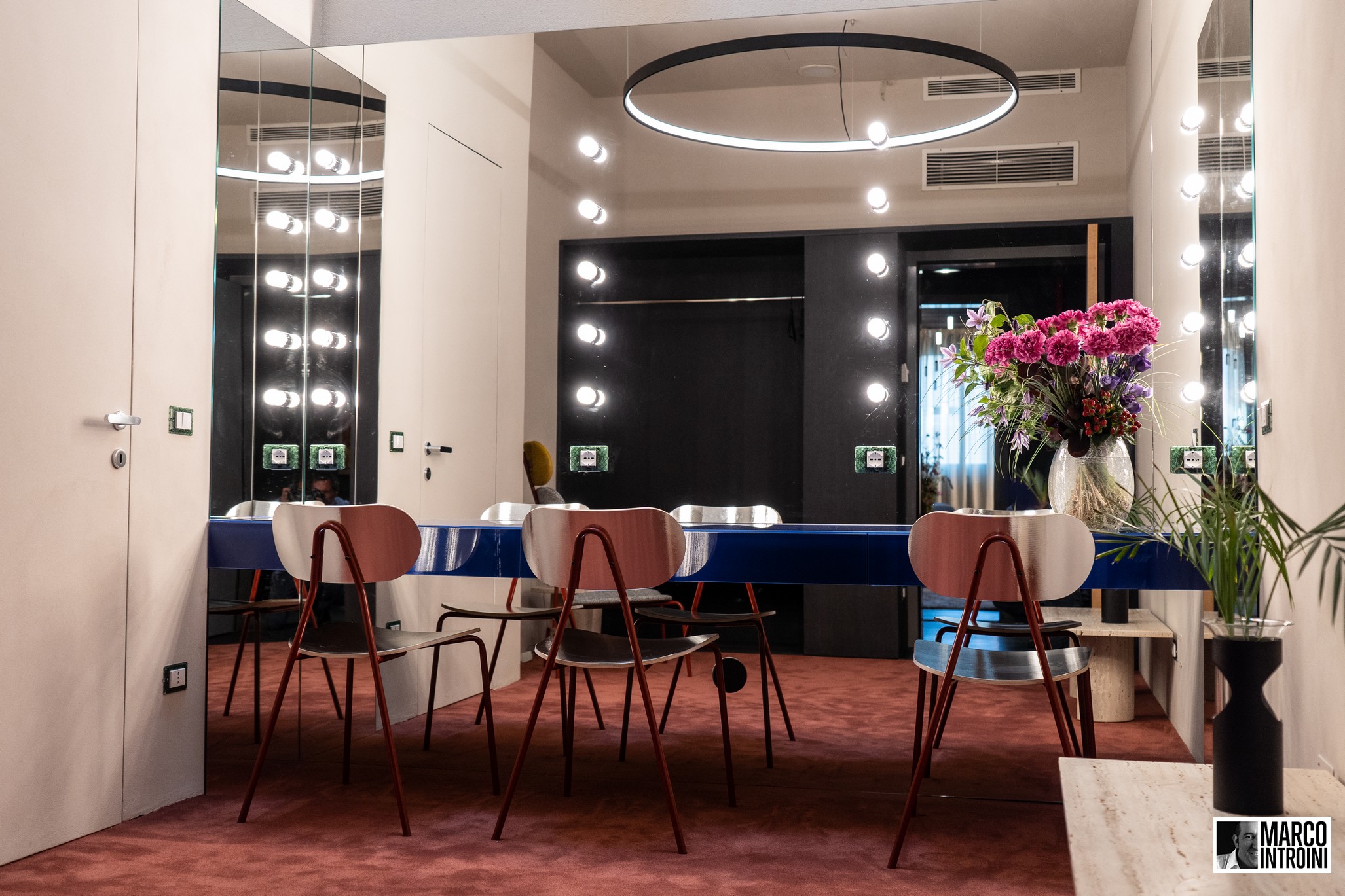 Crisàlide GALANTE MENICHINI ARCHITETTI ”Il camerino è un passaggio. E’ la porta che mette in comunicazione la vita reale ed il palcoscenico, la crisalide dove si attua la metamorfosi di un artista.”