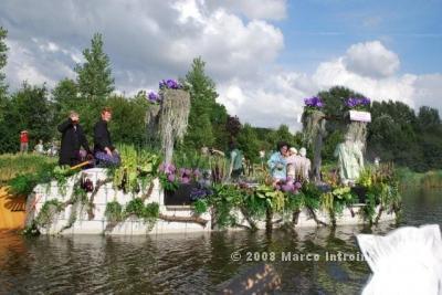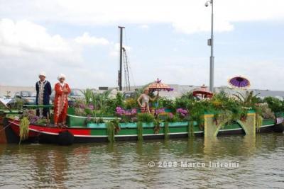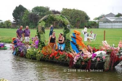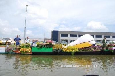 Un giorno chiacchierando con Charlie, il deus ex machina dell'Ufficio olandese dei fiori, è saltata fuori così, per caso: il Gruppo I Felini , che fanno promozione per Ch4Ch avevano in programma una sortita nella terra dei tulipani per animare questo evento e Charlie insieme a Lucas Janssen, il famoso Floral Designer stavano progettando una barca italiana per la sfilata. . . . . mamma mia che curiosità !